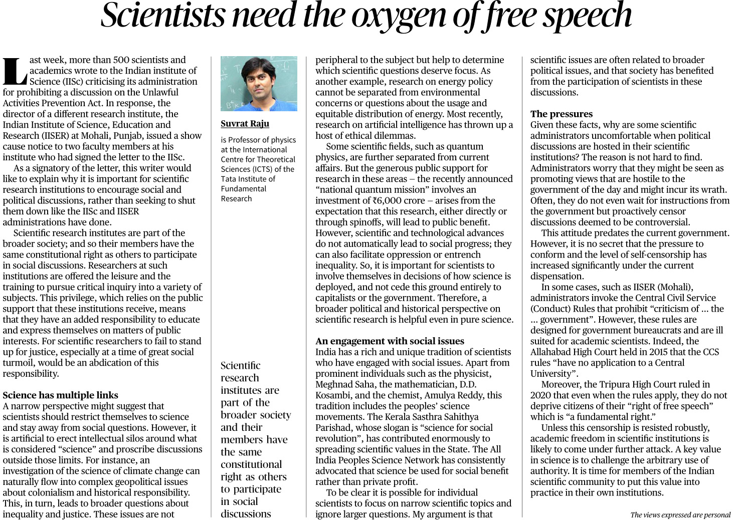 Scientists need the oxygen of free speech - The Hindu.pdf
