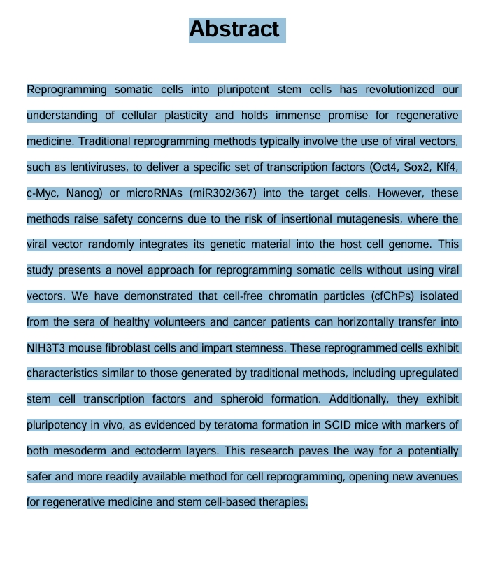 study presents a novel approach for reprogramming somatic cells without using viral
