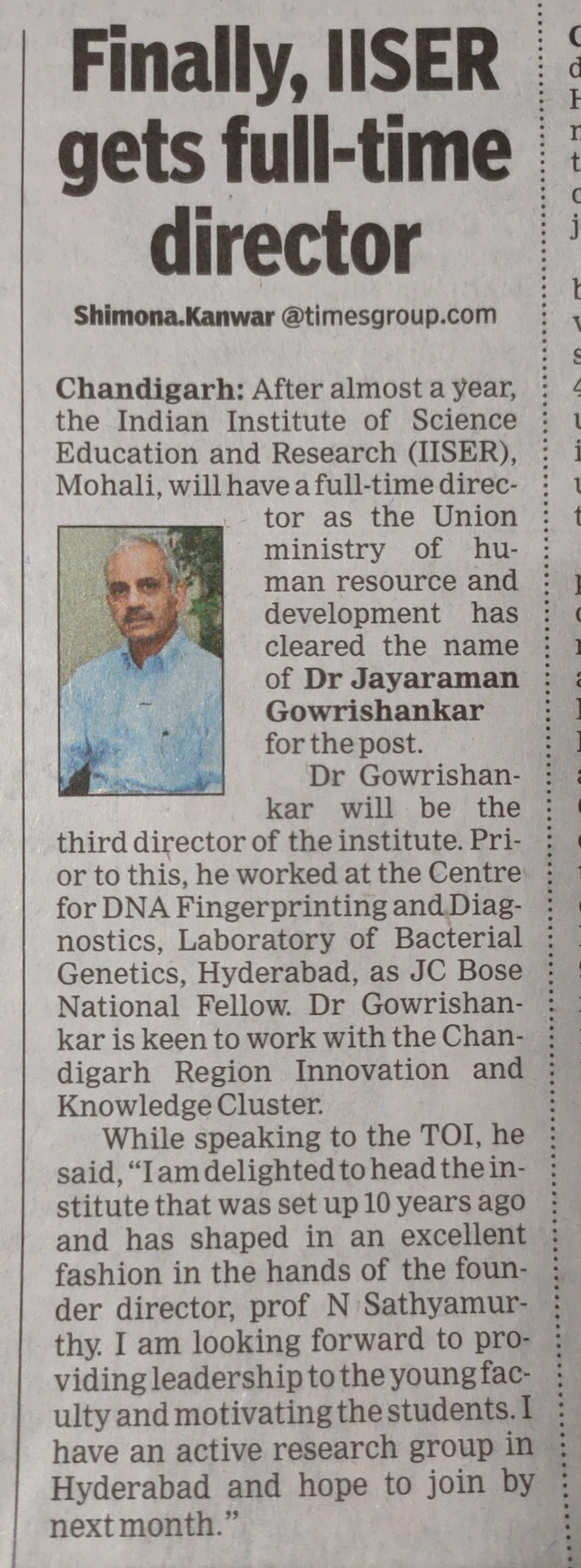 Finaly IISER gets full-time Director