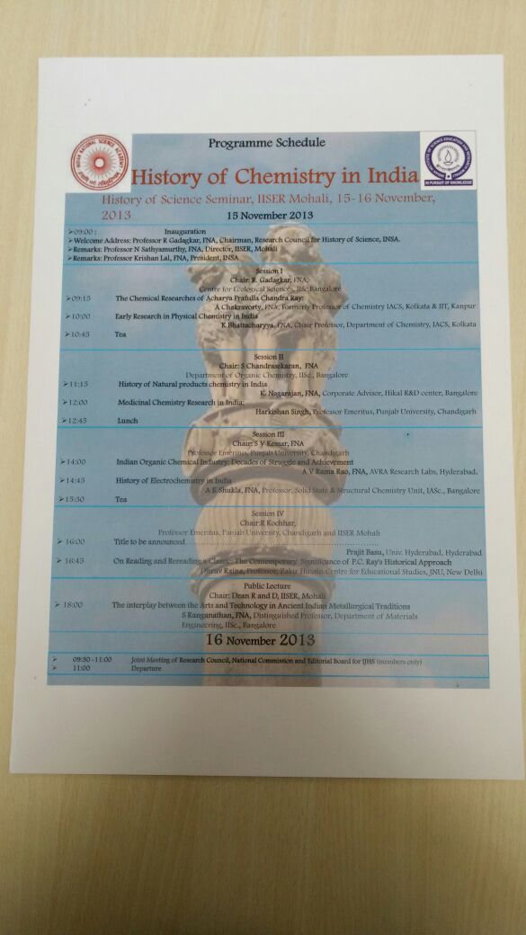 (PROGRAMME SCHEDULE) History of Chemistry in India